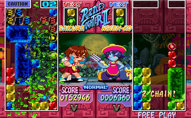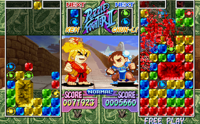 So of course they created a puzzler based on their fighting game IPs, and they did it with a humorous parody of a name: Super Puzzle Fighter II Turbo.